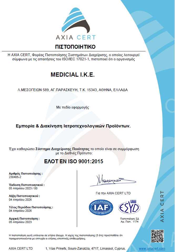 Η ποιότητα στις παρεχόμενες υπηρεσίες, τα προϊόντα και τις διαδικασίες της Medicial αποτελούν απόλυτη δέσμευση για εμάς.